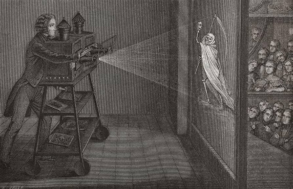 - 17世紀にドイツ人神父のアナタシウス・キルヒャーによって発明された「マジックランターン」は、江戸時代にオランダから輸入され、新しい娯楽装置として広く普及しました。やがてそれは「幻灯機」として日本で独自の進化を遂げ、初代・三笑亭都楽によって改良・改造がなされ、日本独自のヴィジュアルエンターテインメント「写し絵」として芸術性と娯楽性を高めてゆきます。
