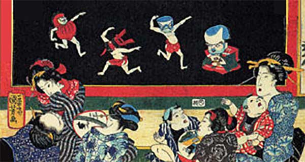 - 特に、文化・文政期になると、都楽流のオリジナル幻灯機(=通称「風呂」と呼ばれた)にガラス絵(種板)の像をスクリーンに投影する視覚芸能「江戸写し絵」は、歌舞伎・講談・祭礼芸能と交差しながら、怪談・風景・笑い話など、多様な演目が作られ、江戸庶民に楽しまれてきました。